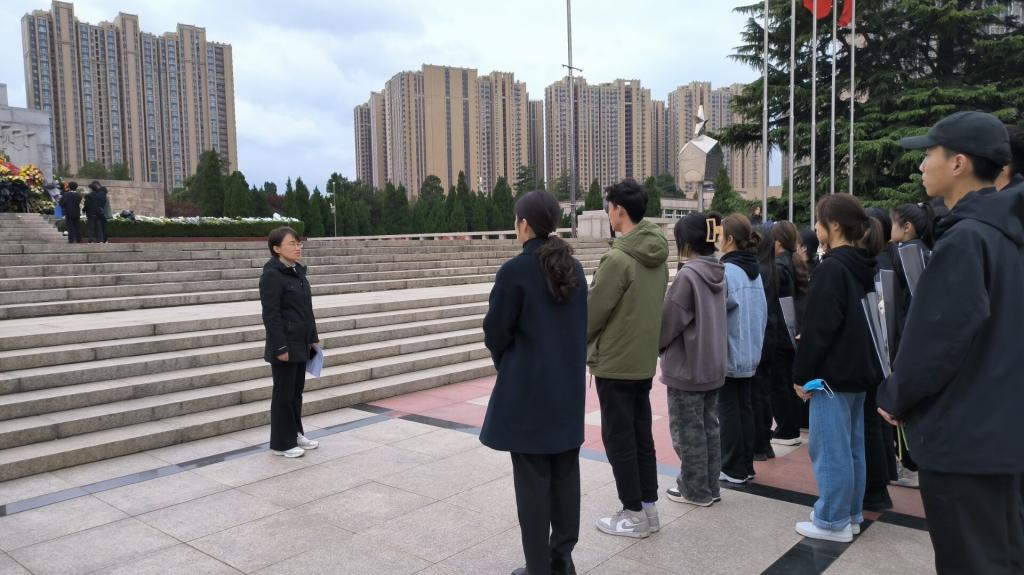 孙宇晴老师在烈士墓区向同学们讲述了吉鸿昌、杨靖宇、彭雪枫等河南籍烈士的英勇事迹。在边走边看边听中,同学们仿佛来到了革命年代,看到了烈士们为了家国大义,战火中出生入死、监牢里坚贞不屈、刑场上大义凛然,感受到了精神上的震撼。