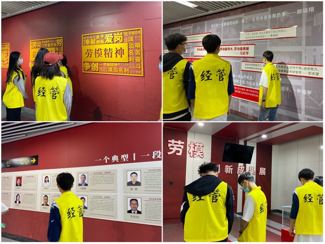 参观“劳模精神”主题车站。5月8日,辅导员孙宇晴带队团员青年前往“五一公园”地铁站,带领大家一起参观站内“五一劳模”展览。在边走边看中,学习河南省劳模故事,感悟劳动精神、劳模精神和工匠精神,砥砺奋进力量。