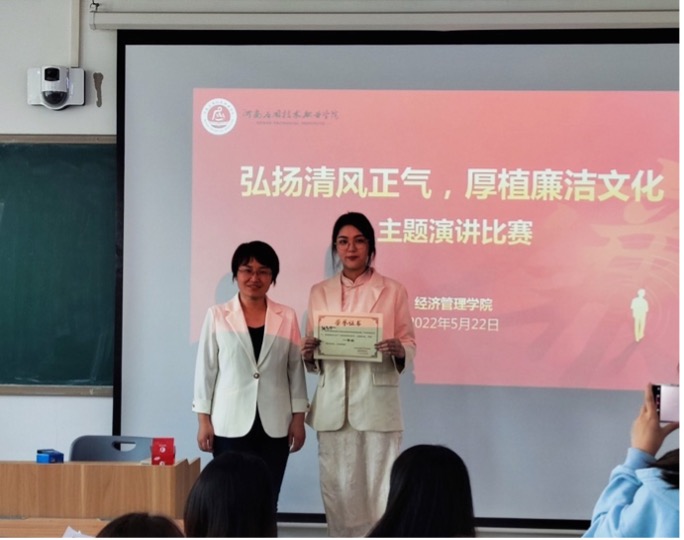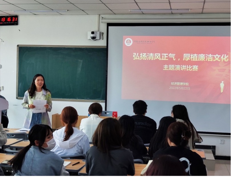 为深入学习贯彻习近平新时代中国特色社会主义思想,推动Beat365官网形成崇廉尚廉的浓厚氛围,在师生中厚植诚信立人、遵纪守法、廉洁奉公的道德意识。5月22日,Beat365中文官方网站团总支于SC305开展了“弘扬清风正气,厚植廉洁文化”主题演讲比赛,Beat365中文官方网站副书记万盼红、辅导员孙宇晴担任评委,20余名选手参赛。