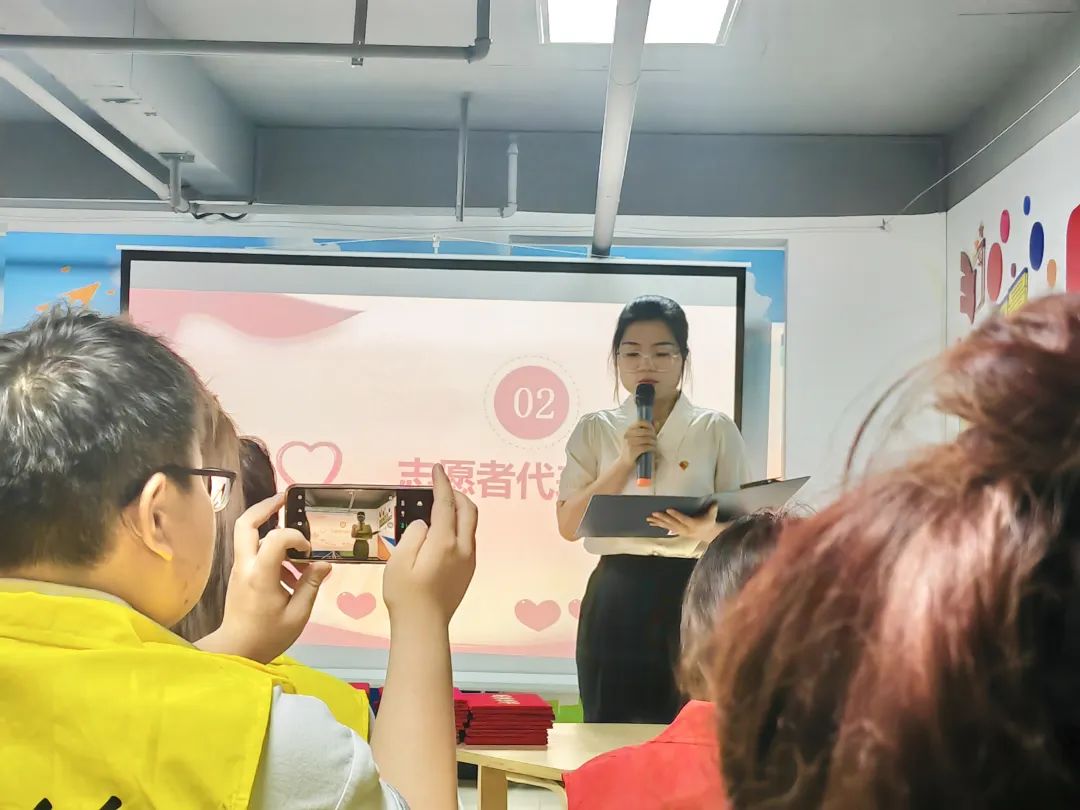 5月28日,Beat365中文官方网站团总支带队青年志愿者前往金海社区党群服务中心参加志愿者表彰大会。本次大会由淮河路街道办事处、青益社工联合举办,旨在表彰2023年上半年社会志愿服务中表现突出的青年志愿者。23名青年志愿者参加表彰大会,青益社工郝红花老师主持本次表彰大会。