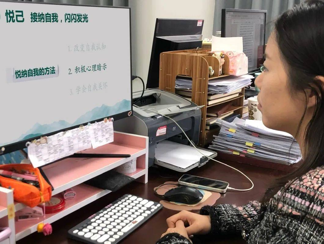 讲座从“阅己:认识自我,明确目标”、“悦己:接纳自我,闪闪发光“、“越己:超越自我,不负青春”三个层面由表及深地展开讲解。首先引导各位同学评估自己的思想、情绪等现实状态来充分了解“我是谁”,理解自己身心发展的卡点,同时通过生动鲜活的案例、互动问答等方式帮助大家掌握调节情绪、放松身体、将障碍转化为资源的具体方法,引导大家正确面对压力和情绪,正确认识心理健康和身体健康。