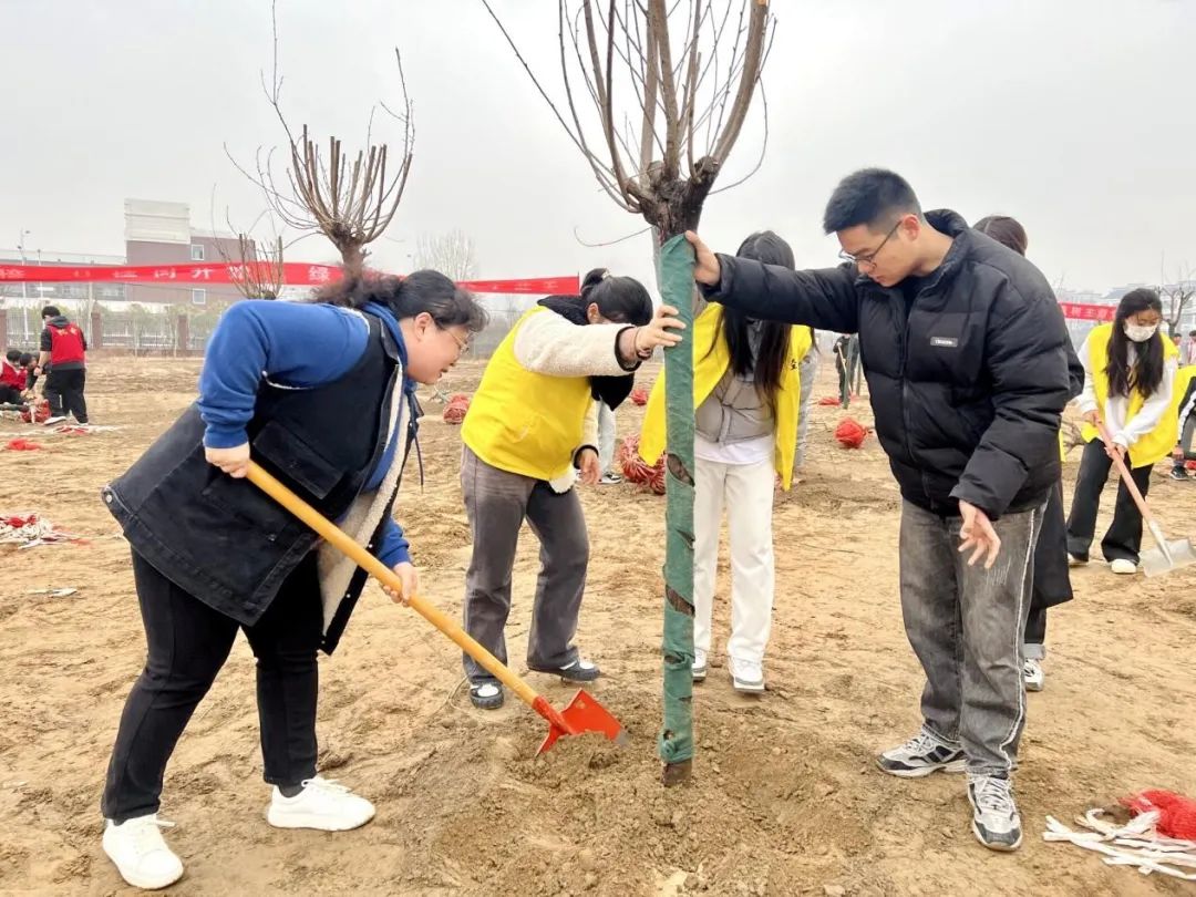 为营造爱绿、护绿、植绿的浓厚氛围,在第46个植树节期间,Beat365中文官方网站党总支组织党员教师及60余名团员青年共同前往开封校区(北院)开展“春风十里 正‘植’有你”主题党日活动。校纪委书记陈雅莉以普通党员身份参加本次主题党日活动。