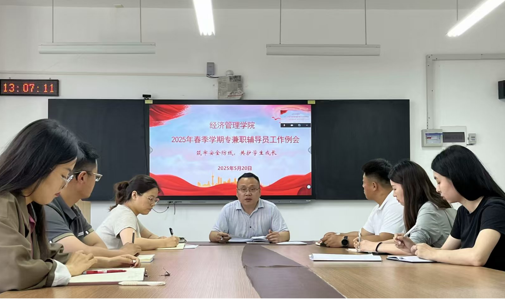 会议同步部署学生发展重点工作。张忠勇指出,辅导员要当好“双创引路人”,积极动员学生参与创新创业大赛,通过赛前培训、导师对接、资源整合等方式提升项目质量,培育学生创新实践能力。在即将开始的岗位实习工作中,强调“全程跟踪、动态沟通”,要求辅导员定期走访实习单位,搭建学生—企业双向反馈机制,及时解决实习中遇到的困难,助力学生实现从校园到职场的平稳过渡。辅导员们纷纷表示要保持“时时放心不下”的责任感,将安全底线与学生成长需求紧密结合,既要当好“安全卫士”,也要做好“成长导师”。