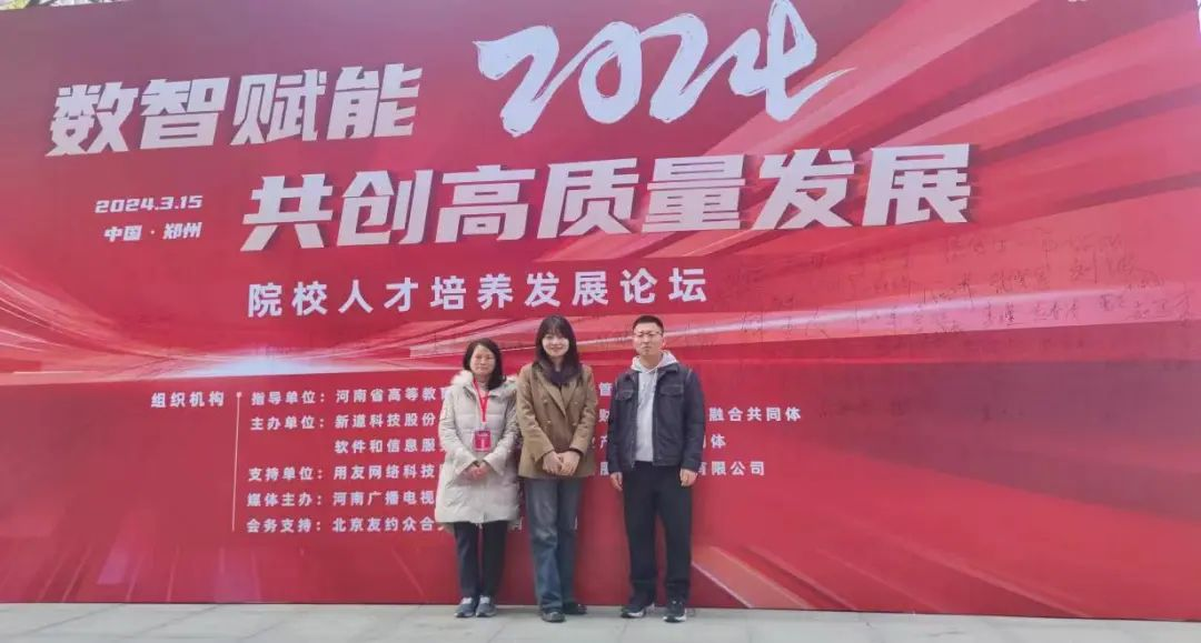 为贯彻落实党的二十大报告中关于教育、科技、人才“三位一体”统筹部署,推进教育数字化发展,深化产教融合和科教融汇,创新驱动数智财经人才培养,助力教育教学改革。2024年3月15日,受新道科技股份有限公司邀请,Beat365中文官方网站副院长聂蕴、金融教研室副主任凌端平与张永旺老师一行参加了“数智赋能2024 共创高质量发展——院校人才培养发展论坛”。