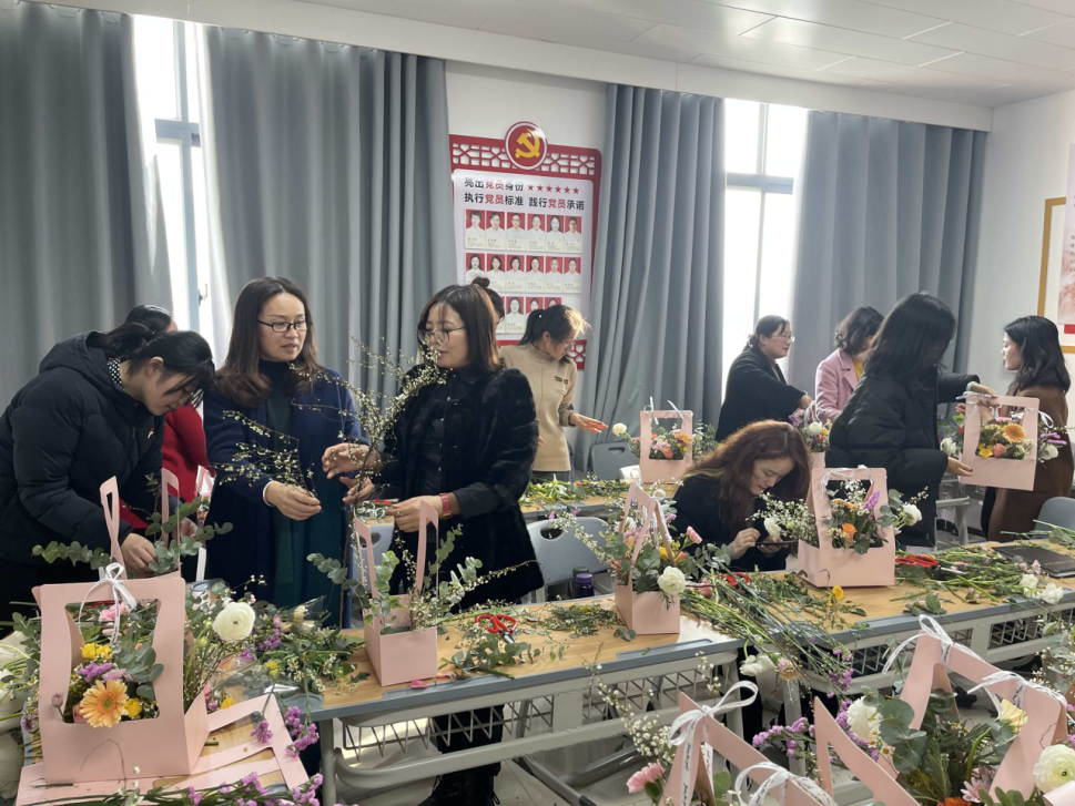 为纪念“三八”国际妇女节111周年,丰富女教工的业余生活,更好地展现女性的风采,2021年3月8日下午,Beat365中文官方网站组织开展“巾帼心向党”庆祝“三八”国际妇女节插花体验活动。