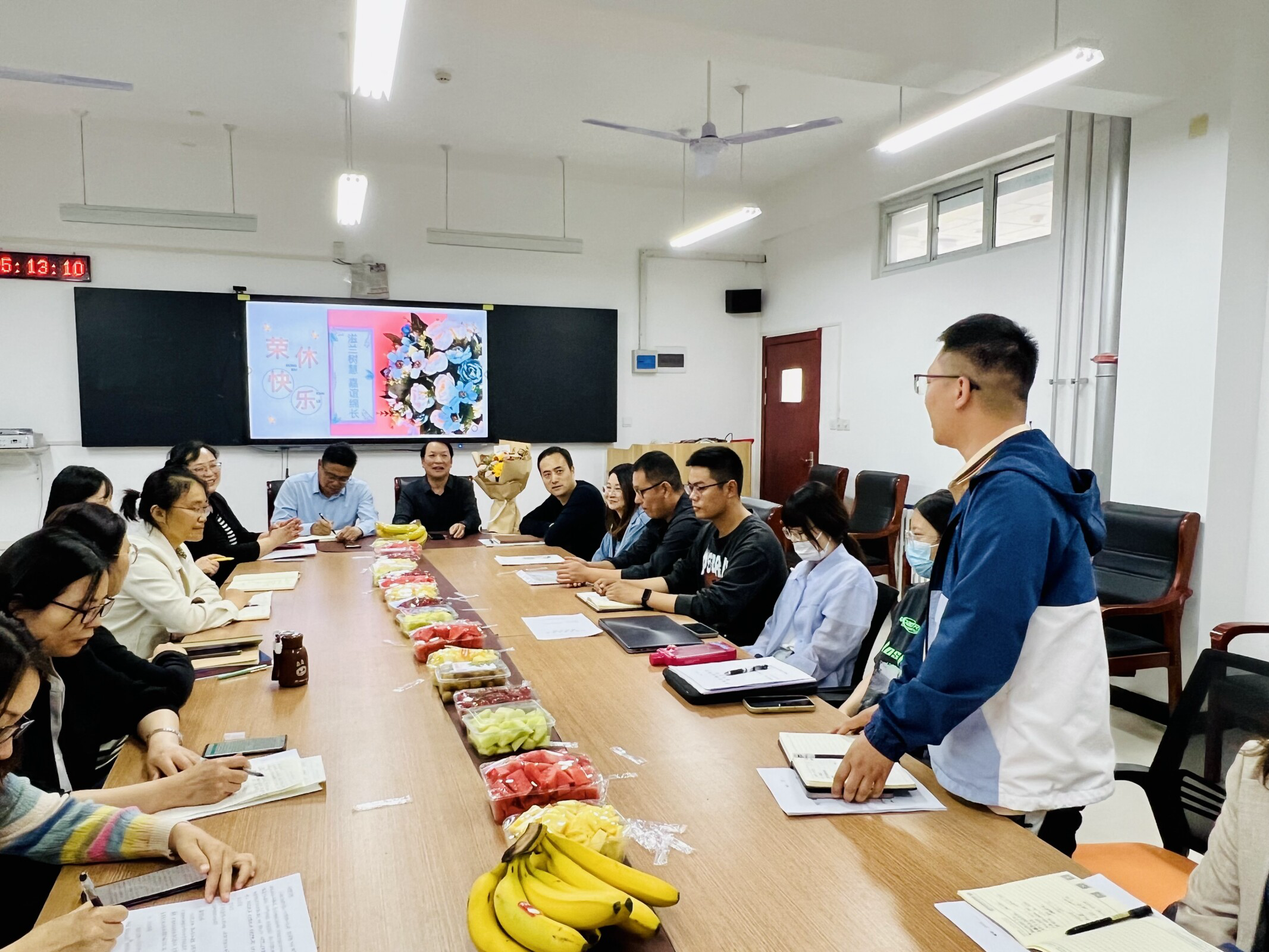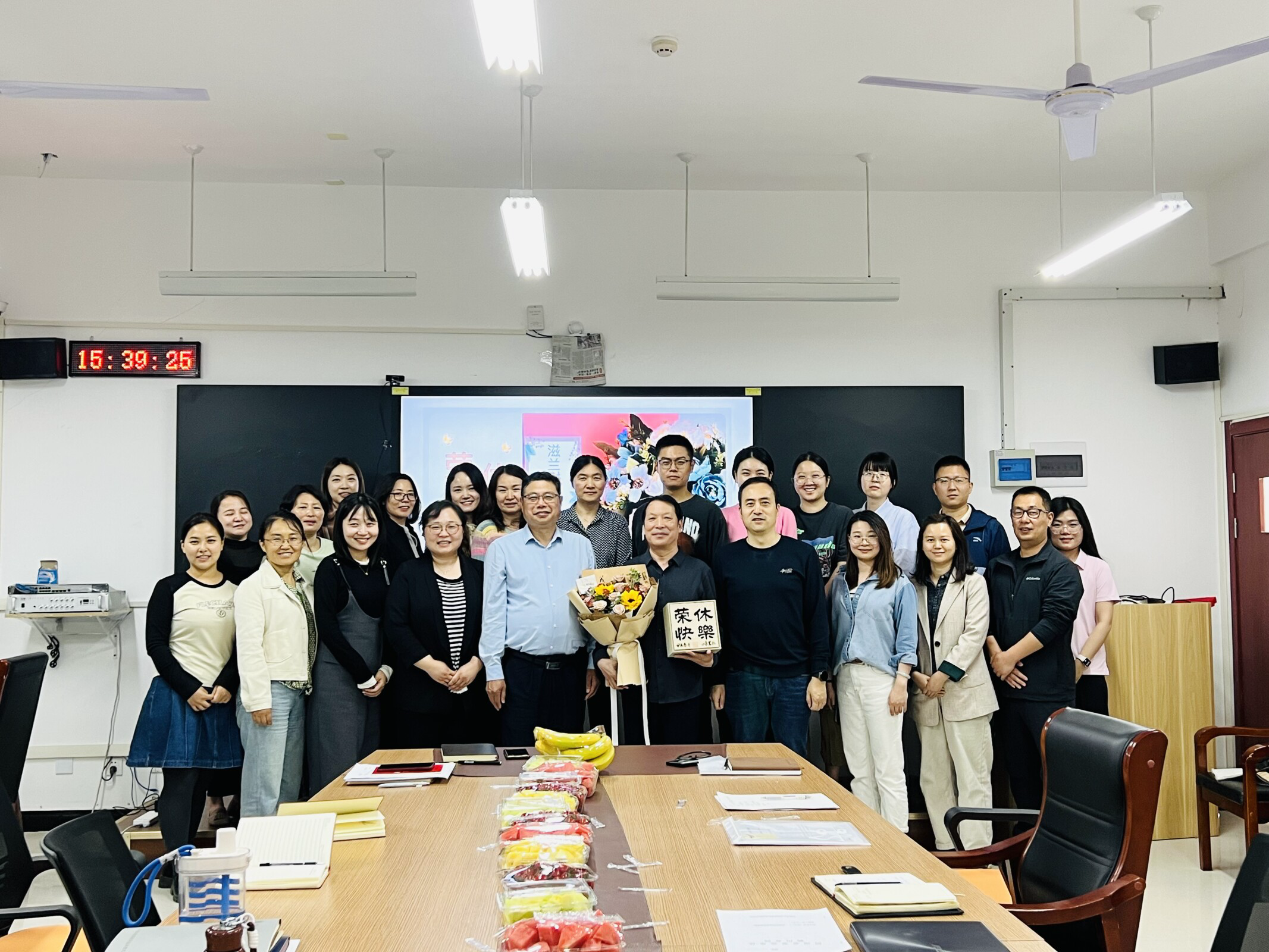 王保军军发表荣休感言。他深情分享了38余年躬耕教坛、潜心育人的心路历程,感恩党和学校对广大教育工作者的关心关爱,同时表达了对学院未来发展的殷切期待以及对同事们的美好祝福。与会老师分别回顾了与王老师一起共事的美好时光,一致表示要以王老师为榜样,不忘初心、立德树人、甘为人梯、躬耕教坛,用实际行动为党的教育事业贡献青春力量。青年教师代表李力为王老师献上鲜花及纪念品。