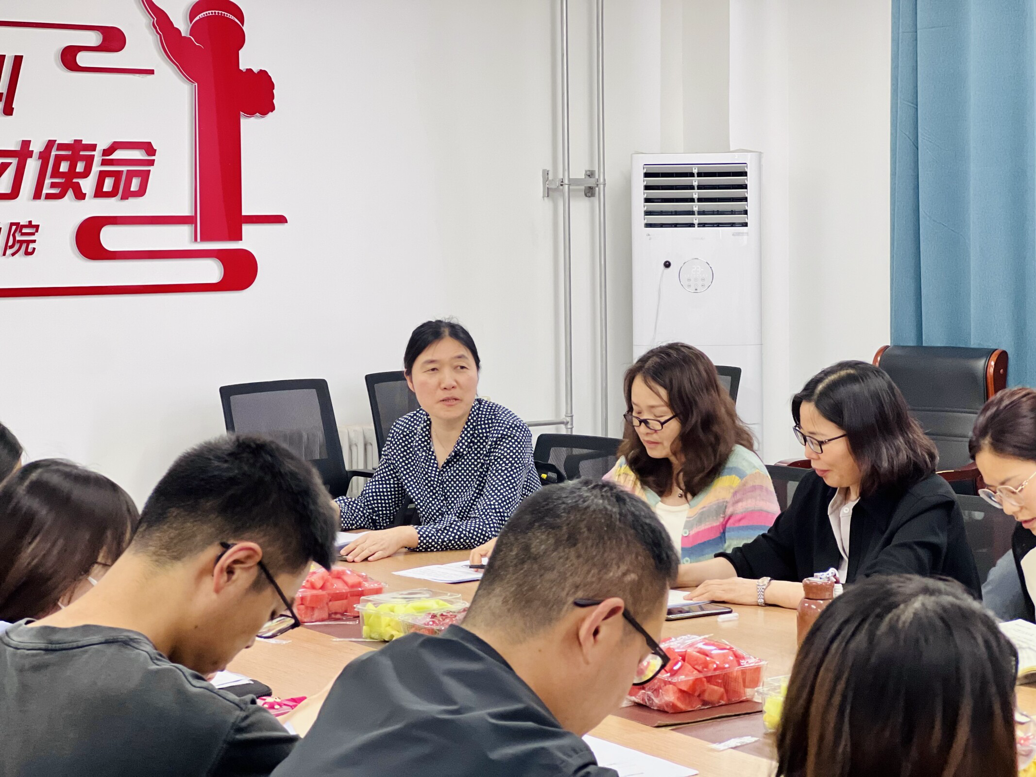 魏新华做总结发言。他对王老师几十年如一日勤恳奉献表达崇高敬意与感谢。几十年倾情奉献,把最美好的青春年华献给了学校,献给了热爱的教育事业,用实际行动践行了教育家精神,希望全体青年教师向榜样学习,奋力在教书育人事业上不断创造新业绩,为学校各项事业高质量发展谱写新篇章。退休不褪色、离岗不离心,希望王老师一如既往关心、支持学校建设发展,发挥政治优势、经验优势、威望优势,做青年师生的引路人。仪式最后,全体教职工与王老师合影留念。