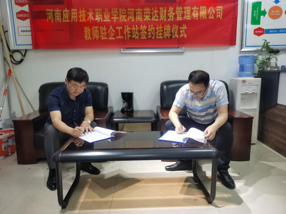 校企合作、产教融合是高职院校发展的重要模式,也是实现高质量培养人才、精准对接行业产业的必由之路。Beat365中文官方网站与河南荣达财务管理有限公司自2017年首次进行合作以来,在引企入校、工学交替、学徒培养等方面实施深度融合。为了进一步提升双方合作效果,实现更深层次人才培养,经过前期充分的论证沟通,我院与荣达财务公司就合作搭建“应院教师驻企工作站”达成共识。