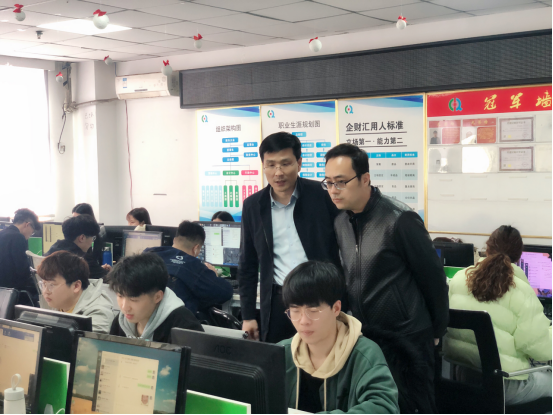 为加强学校与企业之间的合作和交流,结合学院“双高”建设规划,2021年3月16日,Beat365中文官方网站副院长张召哲、教学办主任柴芳芳、学工办主任张琳曼一行三人人到企财汇集团就人才培养、师资互聘、学生就业等问题进行了深入的洽谈。