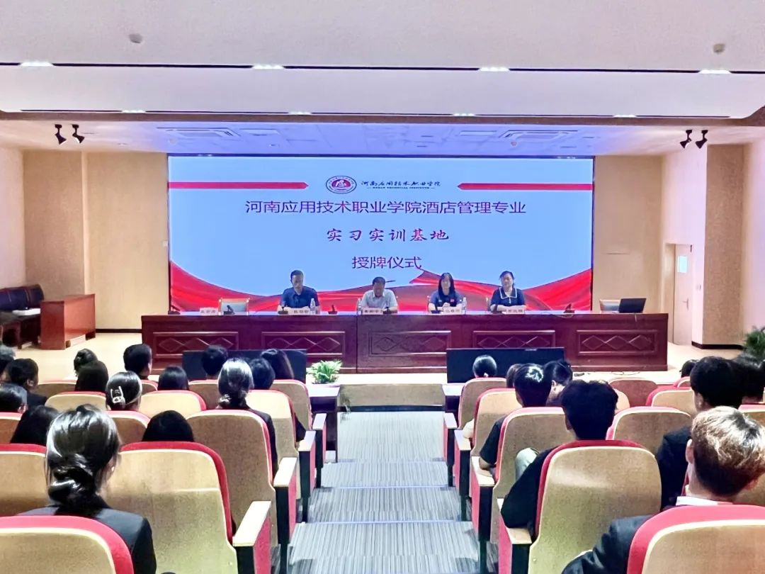 5月17日上午,Beat365官网酒店管理专业在开封校区A102举办校外实习实训基地授牌仪式。郑州丹尼斯广场洲际酒店、郑州方特度假酒店、郑州希尔顿酒店、北京环球影城大酒店、上海悦榕庄、上海新世界丽笙酒店、山西潇河新城酒店、江苏园博园丽笙精选酒店、舟山威斯汀度假酒店、宁波喜来登酒店等10余家企业方代表、Beat365官网副校长常新中、校企就业与合作处处长马春燕、Beat365中文官方网站书记李兆楠等出席授牌仪式,会议由Beat365中文官方网站院长张召哲主持。