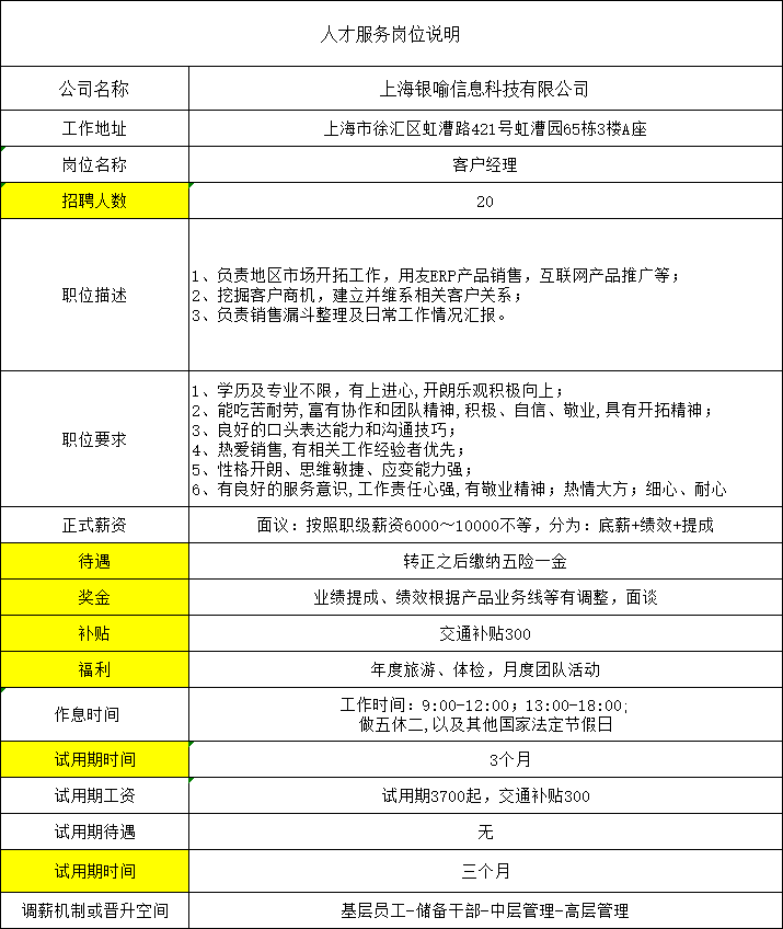 上海银喻-招聘需求