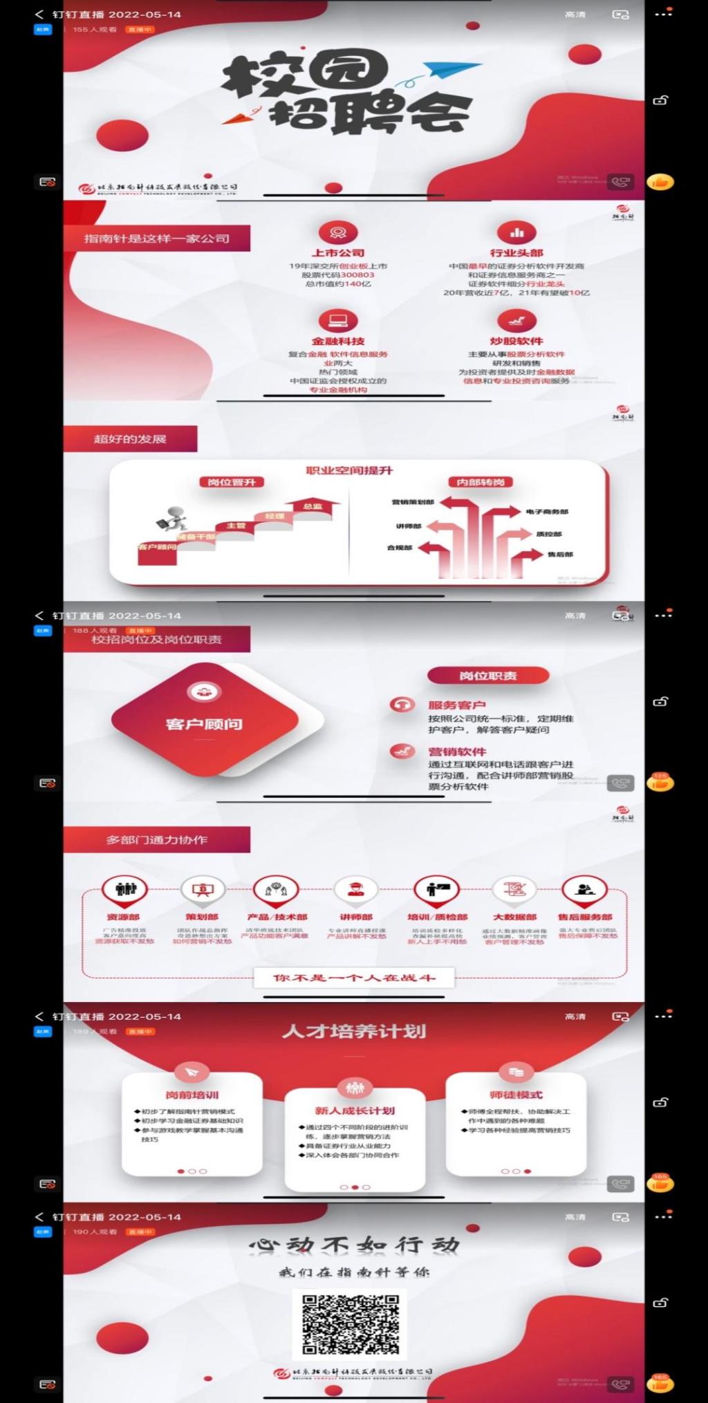 “指南针是一家上市公司,是国内最早的证券分析软件开发商和证券信息服务商之一,具有超好的个人晋升空间......”赵青如是介绍企业、岗位,并指出,来这边工作并不是一个人在战斗,有一群人一起共同学习、进步、成长,这里有比较成熟的人才培养计划,欢迎同学前来实习。