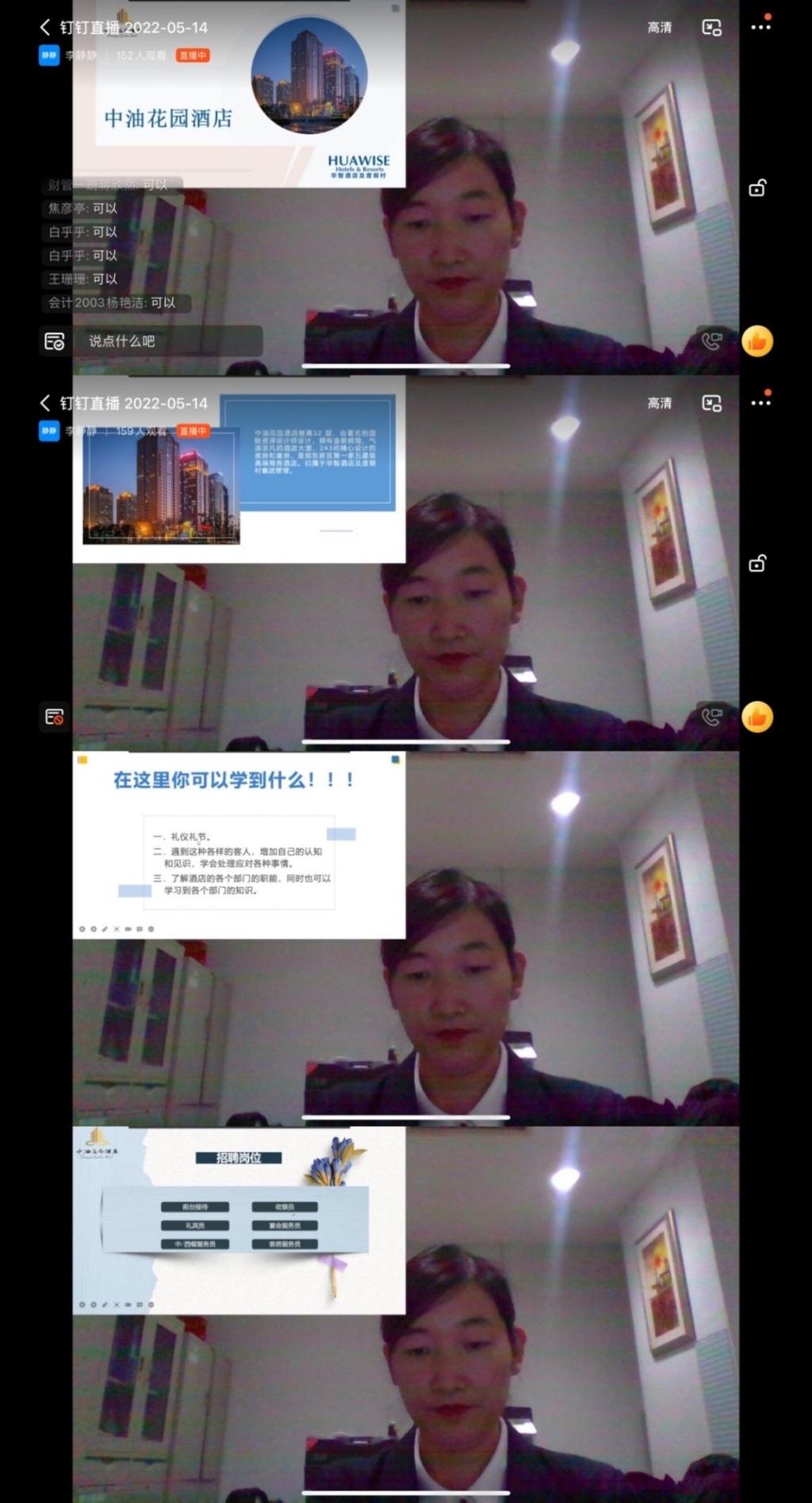中油花园酒店位于郑东新区CBD,是一家按照国际标准配置,集会议、商务、度假为一体的酒店。李静静从衣食住行、晋升待遇、员工活动等方面介绍了实习条件,并指出在这里能学到礼仪礼节、部门联动等知识。本次需要招聘的岗位有前台接待、预定员、服务员、接待员、收银员等。