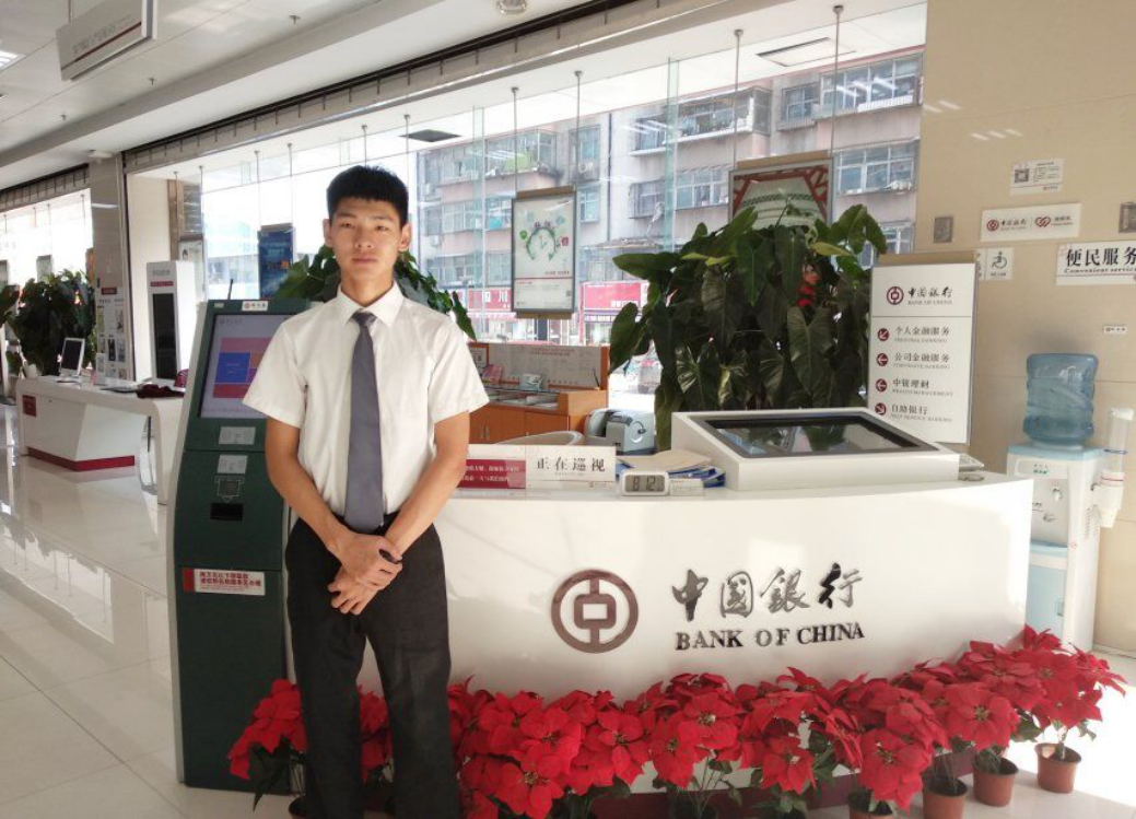 2016级金融管理专业学生,裴来鑫,1998年11月出生,河南南阳人,工作单位:中国银行郑州东明支行大堂经理,主要负责大堂引导、分流;大堂客户服务与办理业务、解答客户的业务咨询、维护所在银行网点的大堂秩序、解决客户纠纷、发展业务等工作。