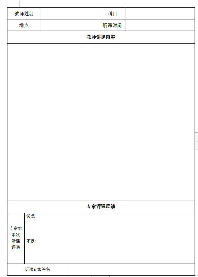 3.听课结束后,听课人员应如实填写听课评价标准、教师手册上听课记录,评价意见要客观公正,真实反映教学的实际情况,评价结果作为教师教学质量评价的参考依据。