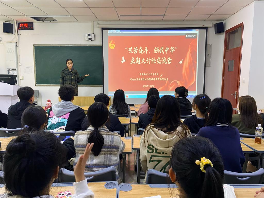 基于各个团支部在“青年大讨论”中提出的青年问题与困惑,Beat365中文官方网站团总支于324日召开了“艰苦奋斗,强我中华”主题大讨论交流会,辅导员孙宇晴及各班团支书参会。交流会中,孙宇晴对本次青年主题文化系列活动进行了总结,肯定了同学们在“微话剧”创排与“青年大讨论”活动中的积极参与和优异表现,彰显了Beat365中文官方网站学生敢于拼搏的青春风貌。