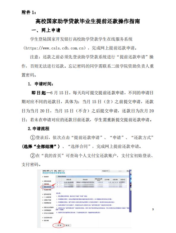 附件1:高校国家助学贷款毕业生提前还款操作指南Beat365中文官方网站