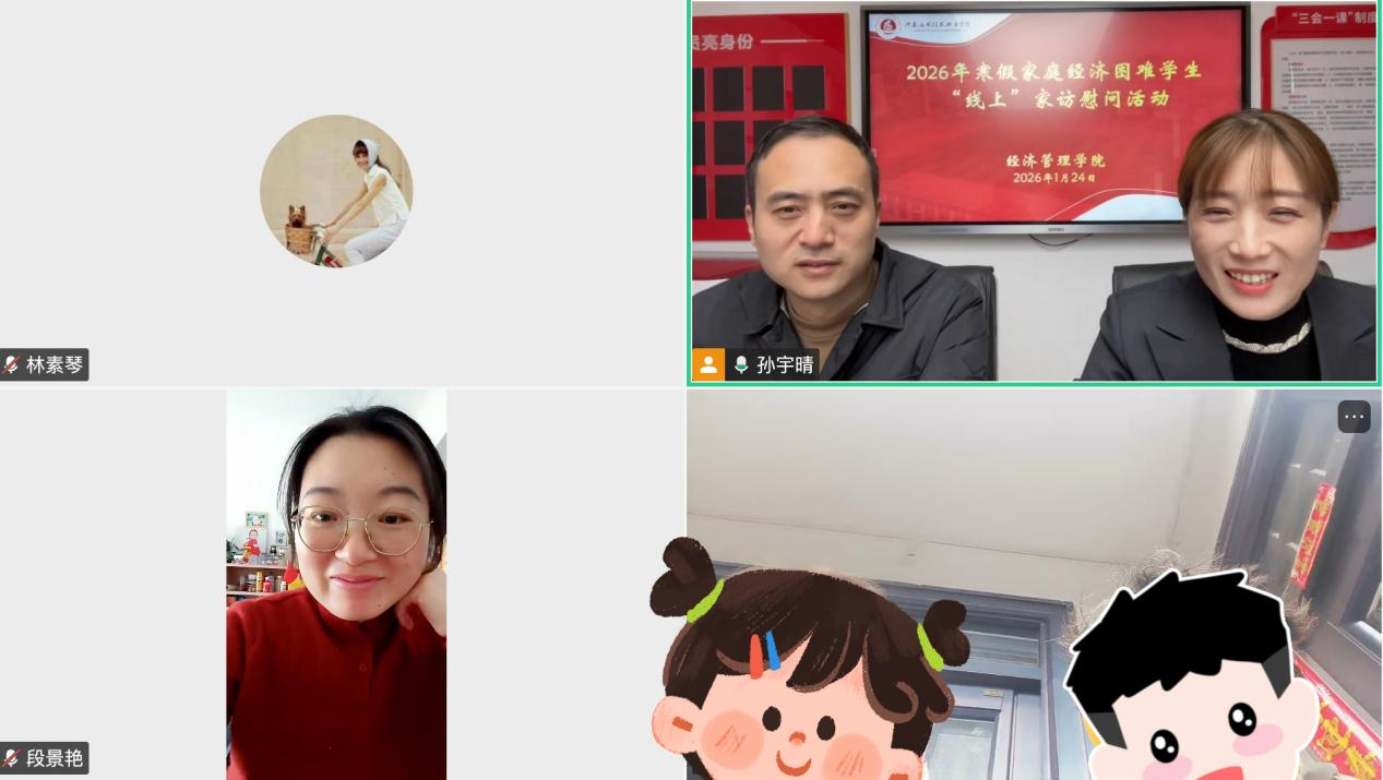 此次线上线下双模式慰问活动,既是政策宣讲与情况摸排,更是情感联结与希望传递。学院通过“云端家访”打破地域限制,实现家校协同;通过“实地走访”贴近学生实际,增强资助育人实效。活动真切传递了国家政策、学校关怀与师长嘱托,赢得了家长感谢与学生共鸣,进一步筑牢了家校共育、合力育人的桥梁。