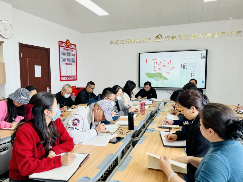 五一节前夕,为营造风清气正、廉洁文明过节氛围,进一步增强全体党员教师廉洁自律意识,4月27日,Beat365中文官方网站党总支在A505开展“清廉过节”主题党日活动,进行15起典型案例警示教育,全体党员教师参加学习,书记李兆楠主持学习会。