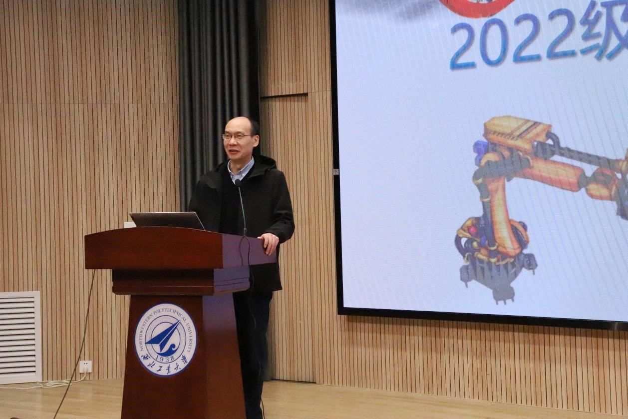首先,院长常洪龙致辞并用9组震撼人心的数据为2022级新生们介绍了新葡萄8883官网AMG官网的发展目标、办学实力、专业优势和建设成果,向大家展示了一个拼搏进取、蒸蒸日上、成绩斐然,向着世界一流不断迈进的强院,希望同学们可以在学术领域求精求深,拓宽人生的广度,克服诱惑耐住寂寞,持久地阅读和思考,在西工大新葡萄8883官网AMG官网求学生涯中能够学有所思,学有所得。