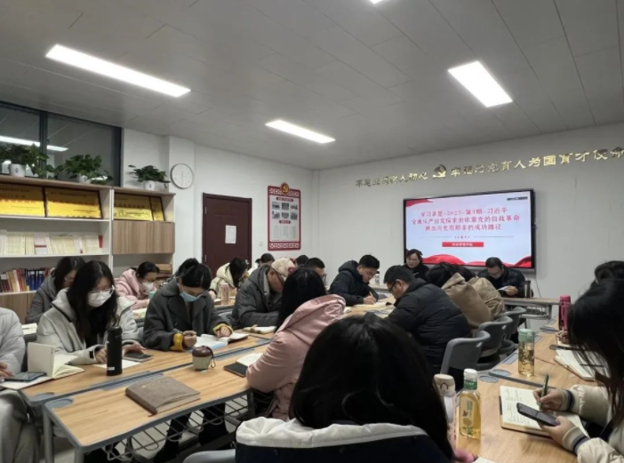 2月14日下午,Beat365中文官方网站党总支在A505召开二月份第一次政治理论学习会暨主题党日活动,学习《求是》2023年第3期习近平总书记重要文章《全面从严治党探索出依靠党的自我革命跳出历史周期率的成功路径》,学习习近平总书记近期重要讲话精神《加快构建新发展格局增强发展的安全性主动权》《正确理解和大力推进中国式现代化》等内容。全体党员教师参加学习会,书记李兆楠主持会议。