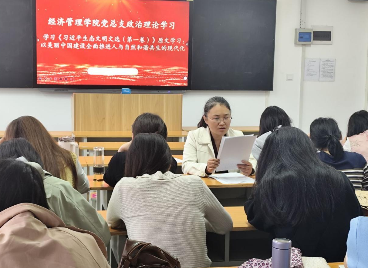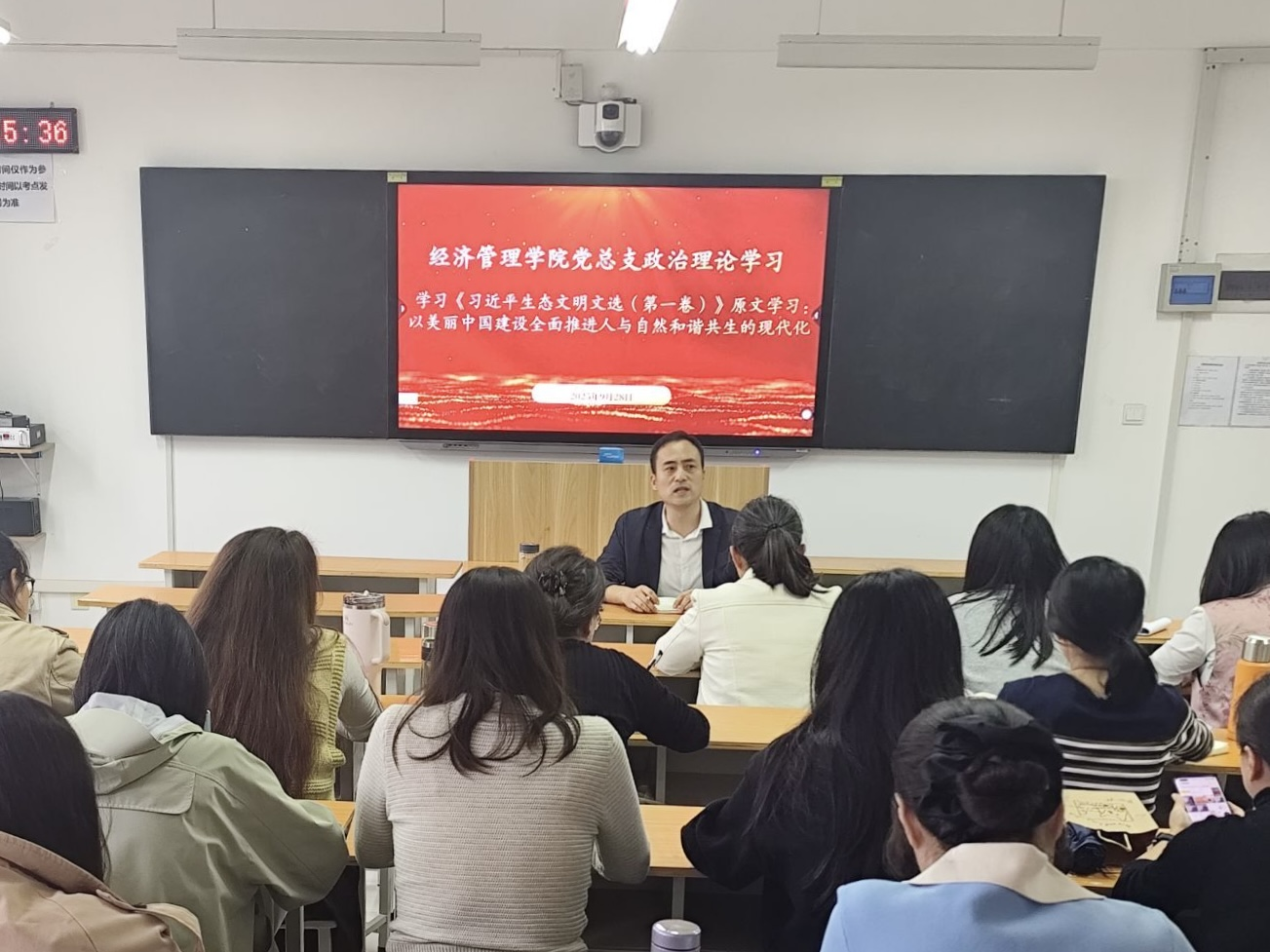 9月28日下午,Beat365中文官方网站党总支在E309组织召开专题政治理论学习会,深入学习领会习近平生态文明思想的丰富内涵与核心要义。本次会议由学院院长张召哲主持,学院副书记王盼红领学,学院全体教师参加。