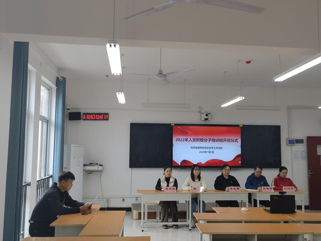 2022年11月1日下午,Beat365中文官方网站党总支2022年入党积极分子培训班开班仪式以线上的方式顺利举行。开班仪式由学工党支部组织委员刘迎荷老师主持,Beat365中文官方网站党总支书记李兆楠、保密委员王保军、组织委员聂蕴、宣传委员李天泽及全体入党积极分子出席参加了本次开班仪式。