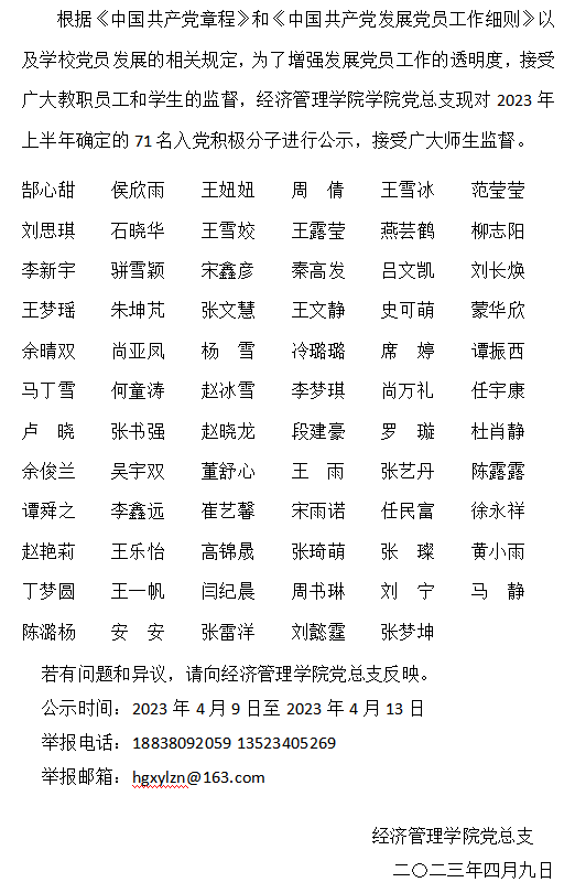 Beat365中文官方网站2023年上半年学生入党积极分子名单公示