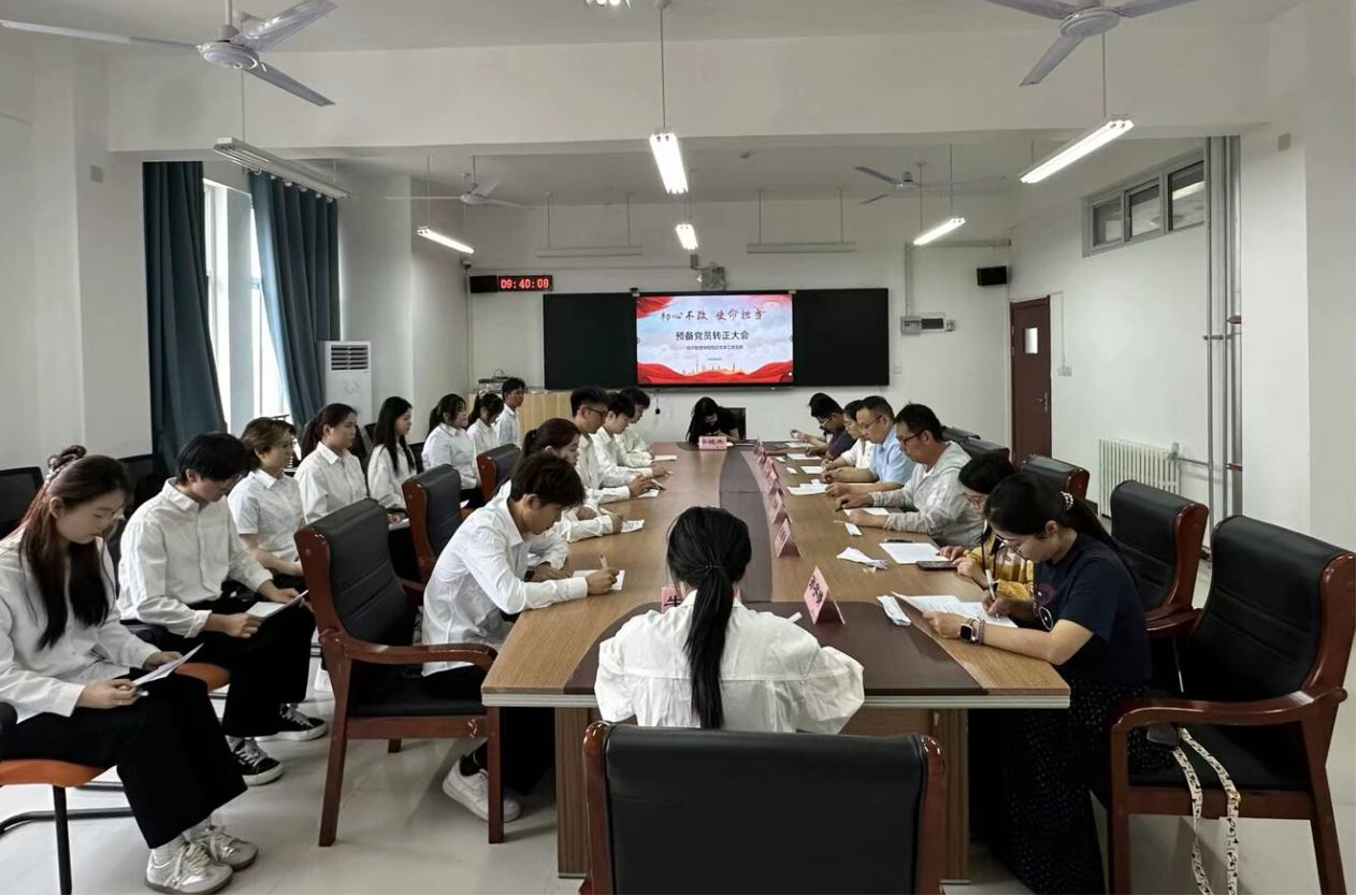 5月30日,Beat365中文官方网站党总支学工党支部在E306会议室召开预备党员转正大会,讨论郜心甜等13名同志的转正事项。会议由学工党支部组织委员李天泽同志主持,全体党员参加会议。