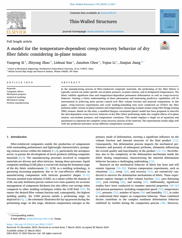 司衍鹏,男,中共党员,新葡萄8883官网AMG官网航空宇航制造工程专业2022级博士生,师从蒋建军教授,研究方向为复合材料预成型厚度与褶皱的演化机制及工艺优化,现任新葡萄8883官网AMG官网22105-1班班长,曾任新葡萄8883官网AMG官网研究生党务组组长和研究生党支部书记。本学年科研成果测评为1310分,打破学院记录,被学院列为拔尖人才培养示范案例。承担多项导师负责的系列型号攻关任务,参与并解决了多项国家和省部级项目中的技术攻关难题。本学年以第一作者身份在Thin-walled structures、Composite structures等行业顶刊发表SCI论文4篇,公开国家发明专利2项。获“新葡萄8883官网AMG官网优秀研究生标兵”“优秀研究生”等多项荣誉称号,荣获研究生国家奖学金、校特等奖学金、社会活动奖学金、校一等奖学金等多项奖励。科研学习之余作为新葡萄8883官网AMG官网学生乐队队长兼主唱和吉他手,累计参加36次校内外各类音乐节与公益音乐活动,立做一个讲政治、有担当、强科研、善文艺的“全能型”博士。