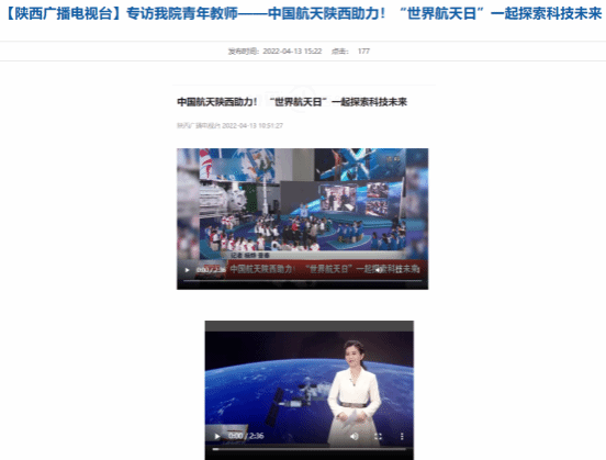 5.4.1【陕西广播电视台】专访新葡萄官网青年教师——中国航天陕西助力!“世界航天日”一起探索科技未来