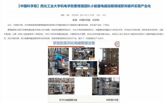 5.4.4【中国科学报】新葡萄8883官网AMG官网曹增强团队小能量电磁加载领域获突破并实现产业化