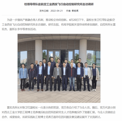 3.2.8新葡萄8883官网AMG官网老师陪同校领导赴航空工业西安飞行自动控制研究所走访调研