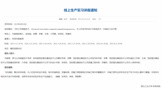 3.2.7疫情期间新葡萄官网邀请西飞、爱生集团专家为学生开展线上生产实习讲座