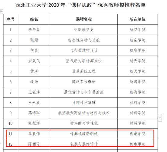 2.7单晨伟、陈丽伶两位老师入选新葡萄8883官网AMG官网2020年“课程思政”优秀教师拟推荐名单